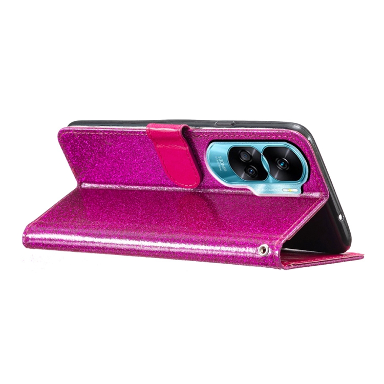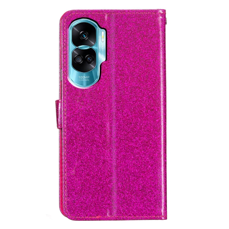 Funda de Cuero para Honor 90 Lite con Tapa y Purpurina en Polvo (Rojo Rosa)