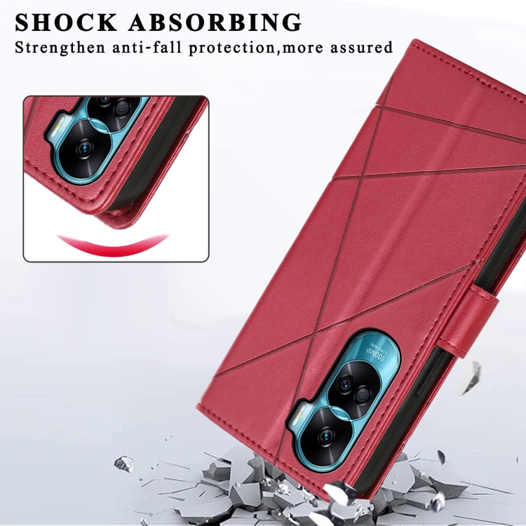Funda para Teléfono Honor 90 Lite PU con Línea en Relieve y Textura de Cuero Genuino (Rojo)
