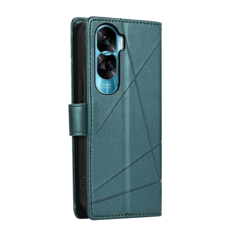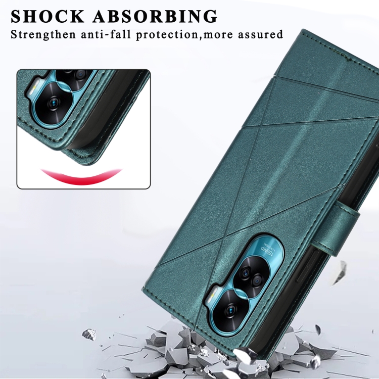 Funda para Honor 90 Lite PU con Línea en Relieve y Textura de Cuero Genuino (Verde)