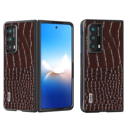 Funda para Honor Magic Vs2 Abeel con Borde Negro y Patrón Cocodrilo de Cuero Genuino (Café)