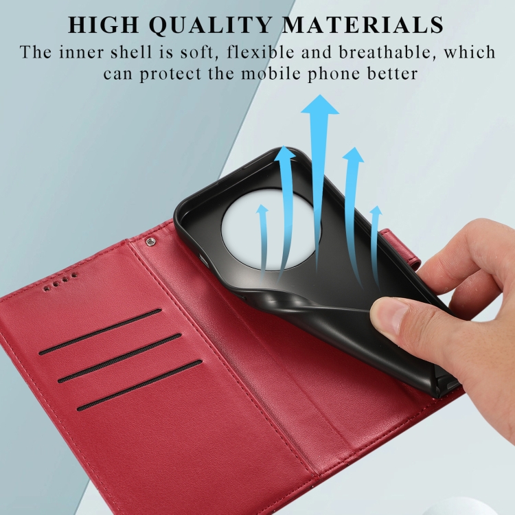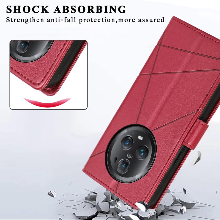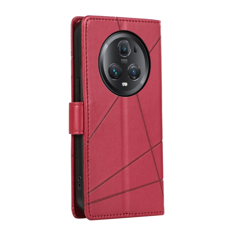 Funda para Honor Magic5 Pro PU con Línea en Relieve y Textura de Cuero Genuino (Rojo)