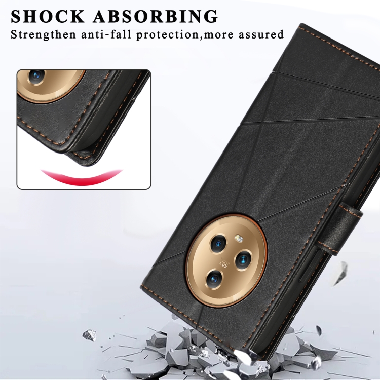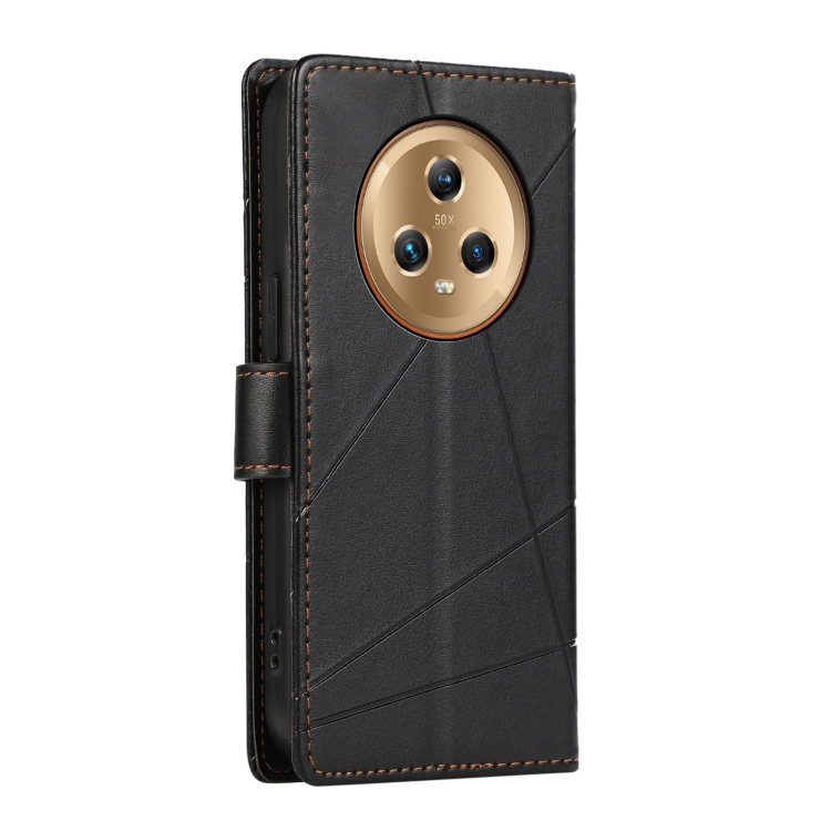 Funda para Honor Magic5 PU con Línea en Relieve y Textura de Cuero Genuino (Negro)