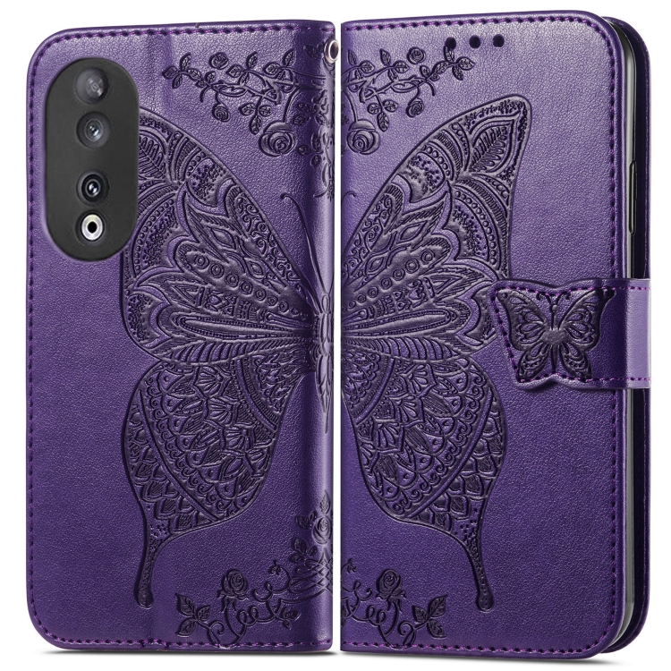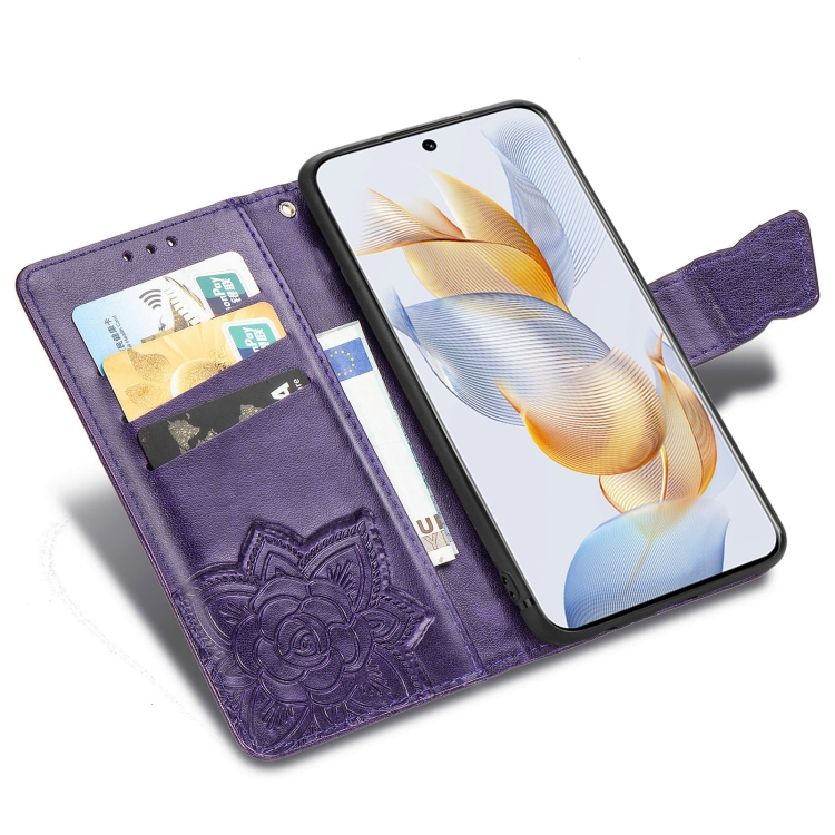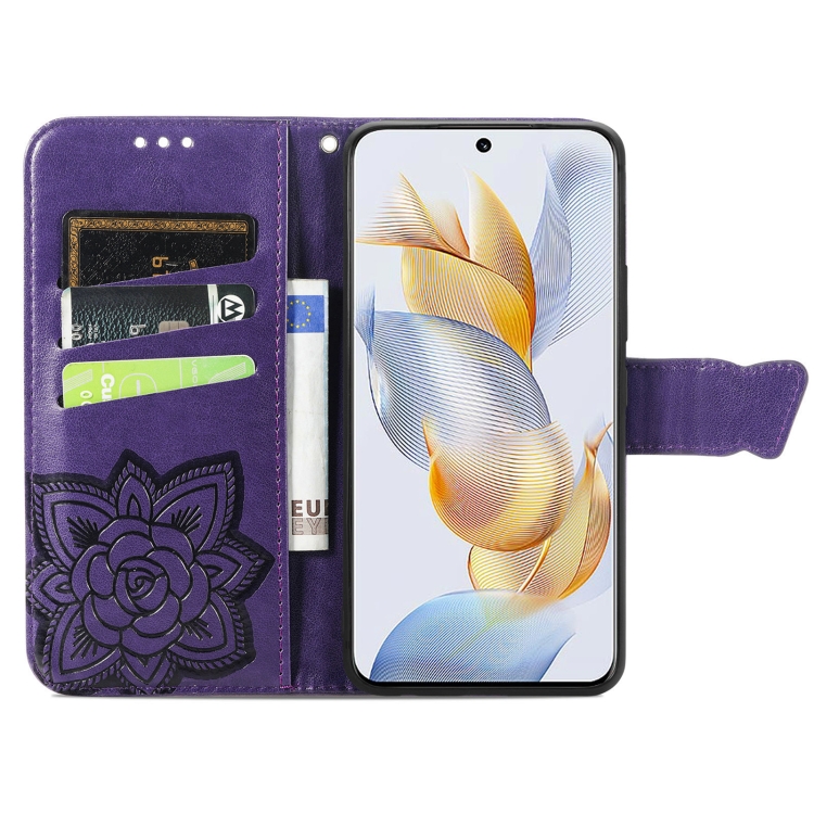 Funda para Honor Play 40C y X5 Plus de Cuero con Relieve Flor y Mariposa (Púrpura)