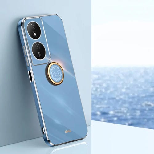 Estuche TPU Xinli para Honor Play 50 Plus 5G con Borde Recto 6D y Soporte para Anillo (Azul Celestial)