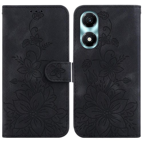 Funda para Honor X5 Plus y Play 40C de Cuero con Relieve Lily (Negro)