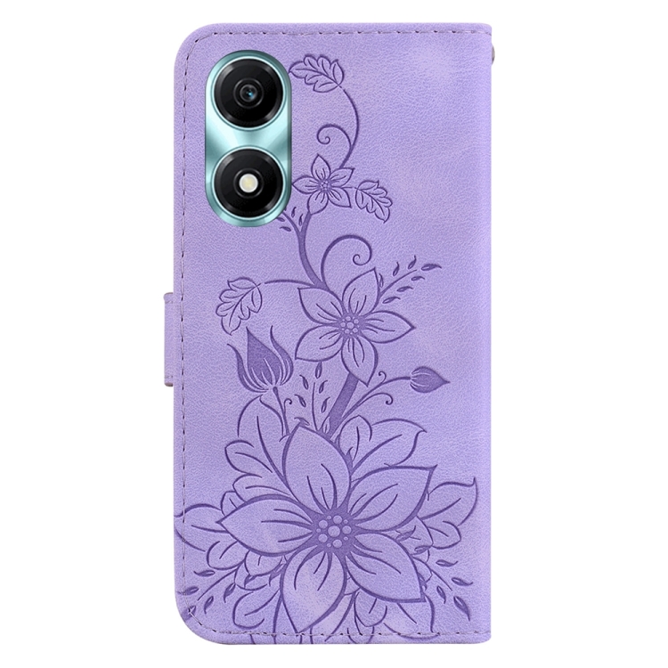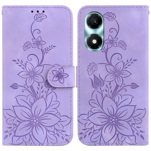 Funda para Honor X5 Plus y Play 40C de Cuero con Relieve Lily (Púrpura)