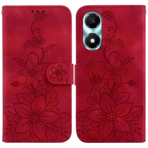 Funda para Teléfono Honor X5 Plus / Play 40C Cuero con Relieve Lily (Rojo)