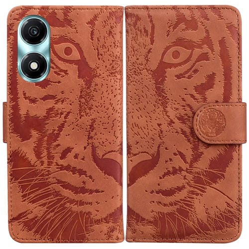 Funda para Honor X5 Plus y Play 40C de Cuero con Tapa y Patrón en Relieve de Tigre (Marrón)