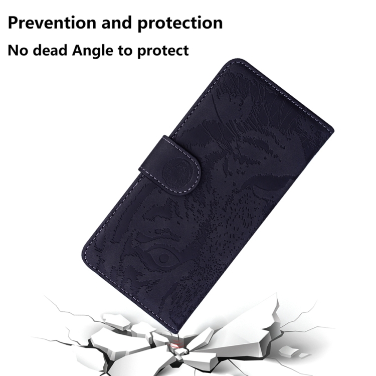 Funda para Honor X5 Plus y Play 40C de Cuero con Tapa y Patrón en Relieve de Tigre (Negro)