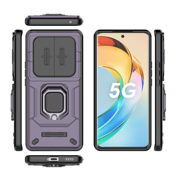 Funda para Honor X50 5G TPU + PC con Sliding Camshield y Soporte (Púrpura)
