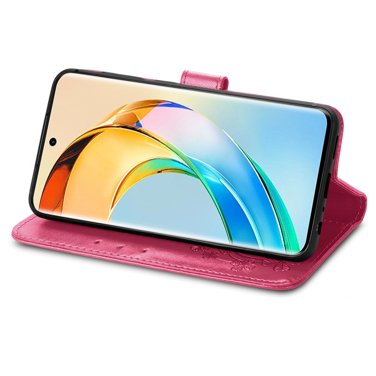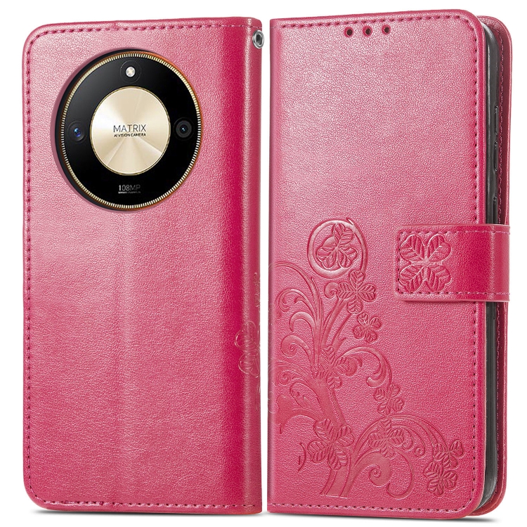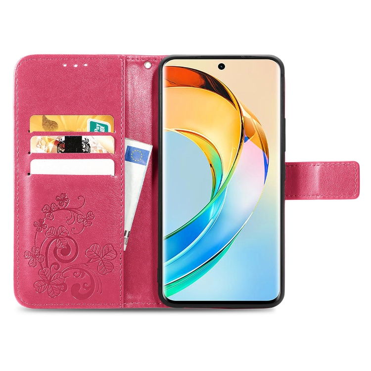 Funda de Cuero Repujado para Honor X50 con Cierre de Cuatro Hojas (Magenta)