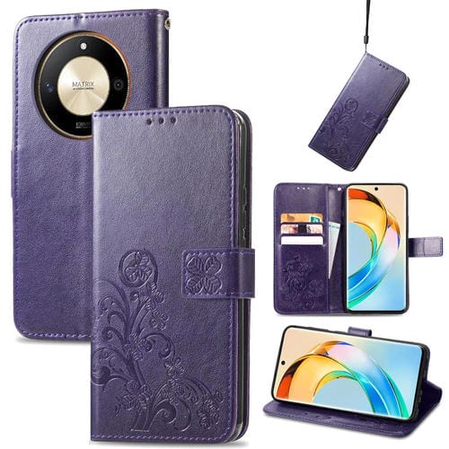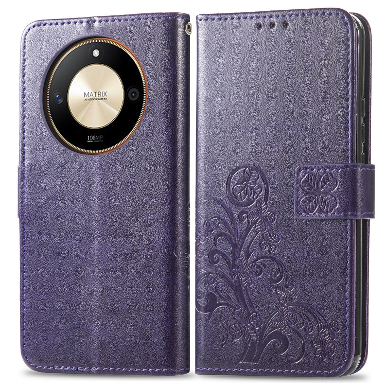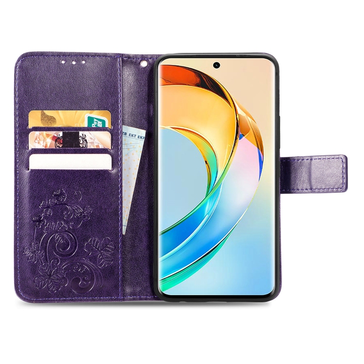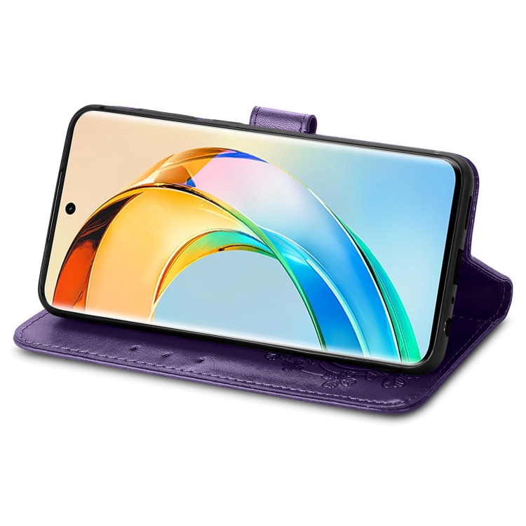 Funda para Teléfono Honor X50 Cuero En Relieve con Cierre de Cuatro Hojas (Púrpura)