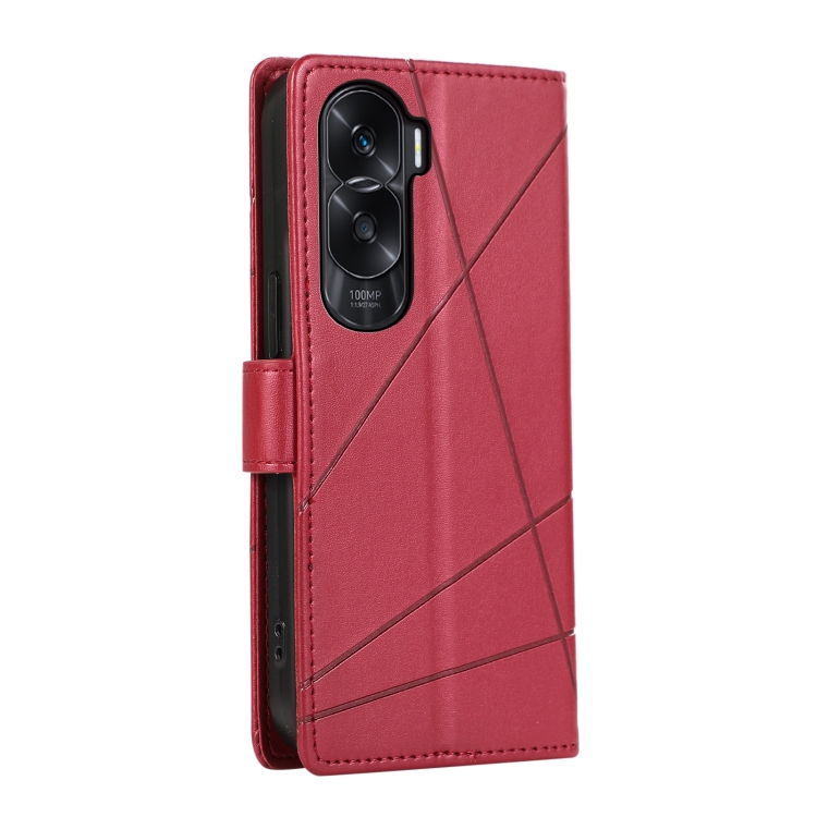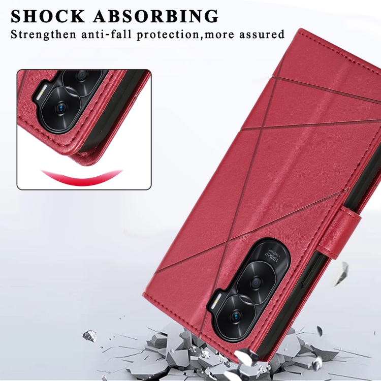 Funda para Honor X50I con Línea en Relieve y Textura de Cuero Genuino (Rojo)