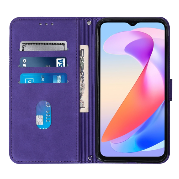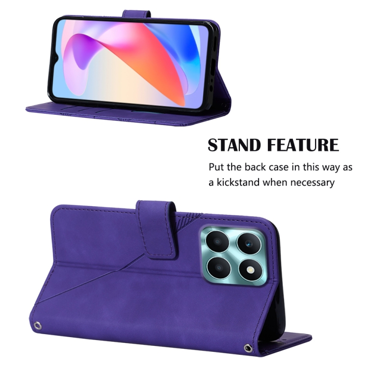 Funda para Honor X6A Crossbody de Cuero con Tapa en Relieve 3D (Púrpura)