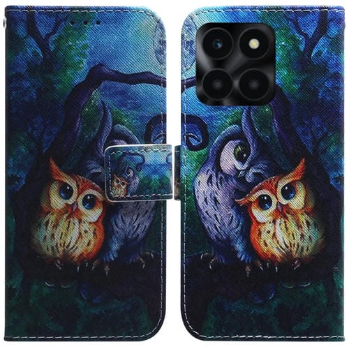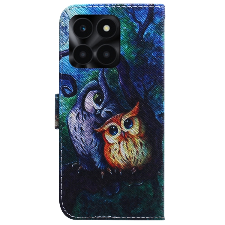 Funda de Cuero con Tapa para Honor X6A con Dibujo Búho de Pintura al Óleo