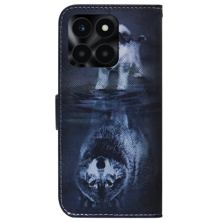 Funda de Cuero con Tapa para Honor X6A con Dibujo Coloreado (Lobo y Perro)