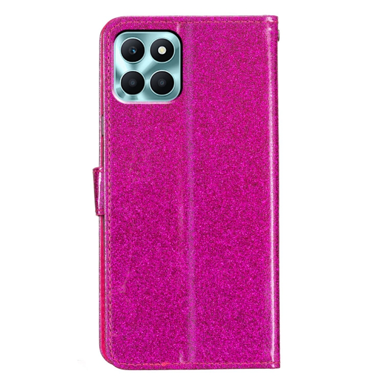 Funda para Honor X6A con Tapa de Cuero y Purpurina en Polvo (Rojo Rosa)