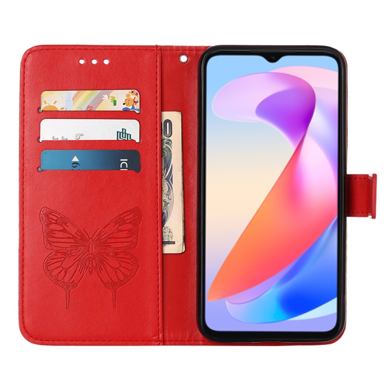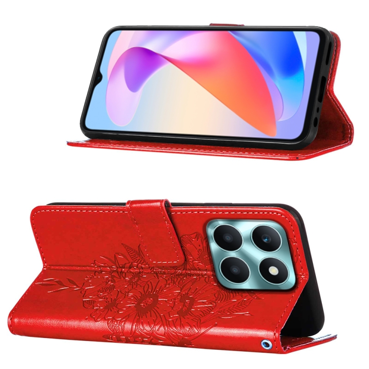 Funda para Honor X6A de Cuero con Mariposa en Relieve (Rojo)