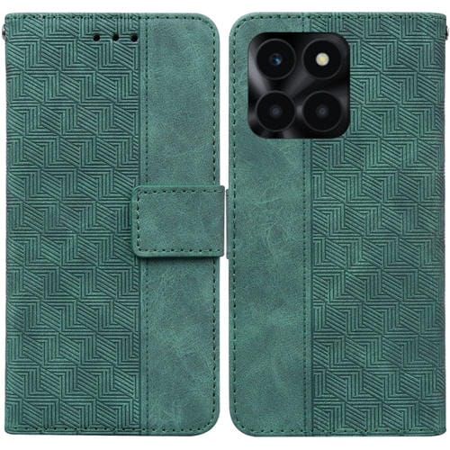 Funda para Honor X6A de Cuero con Relieve Geométrico (Verde)