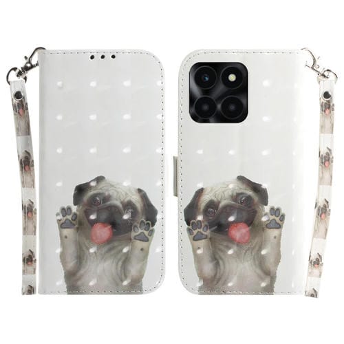 Funda para Honor X6A de Cuero con Tapa Horizontal y Diseño 3D (Pug)