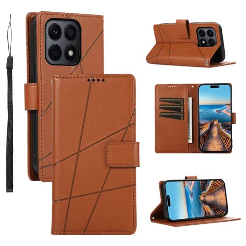 Funda de Teléfono para Honor X8A con Línea en Relieve y Textura de Cuero Genuino (Marrón)