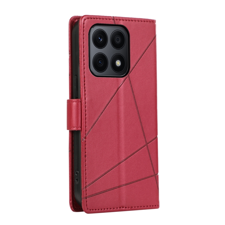 Funda para Honor X8A con Línea en Relieve y Textura de Cuero Genuino (Rojo)