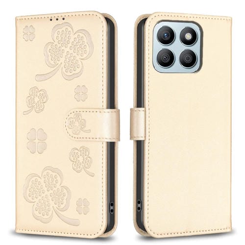 Funda de Cuero para Honor X8B con Relieve de Cuatro Hojas (Dorado)