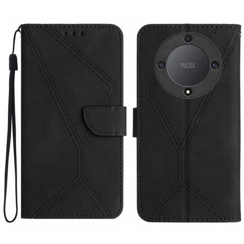 Funda de Cuero para Honor X9B con Costuras en Relieve (Negro)