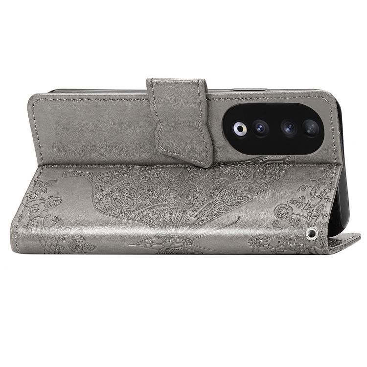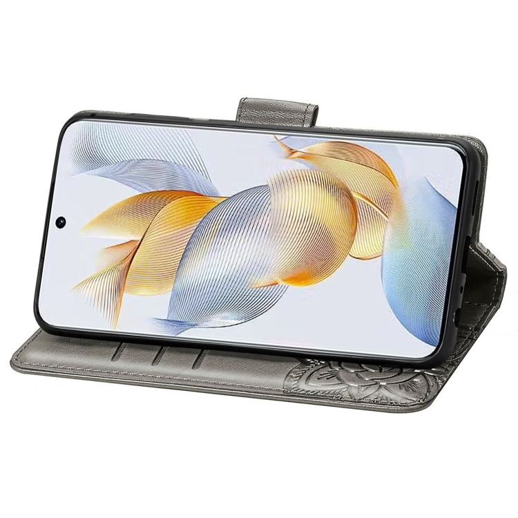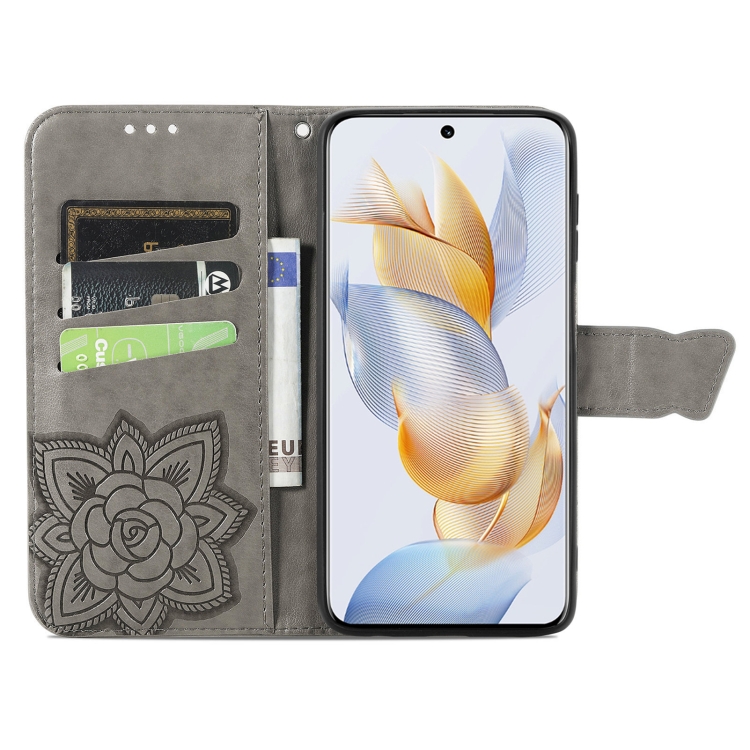 Funda para Honor X9B de Cuero con Relieve Flor de Amor y Mariposa (Gris)