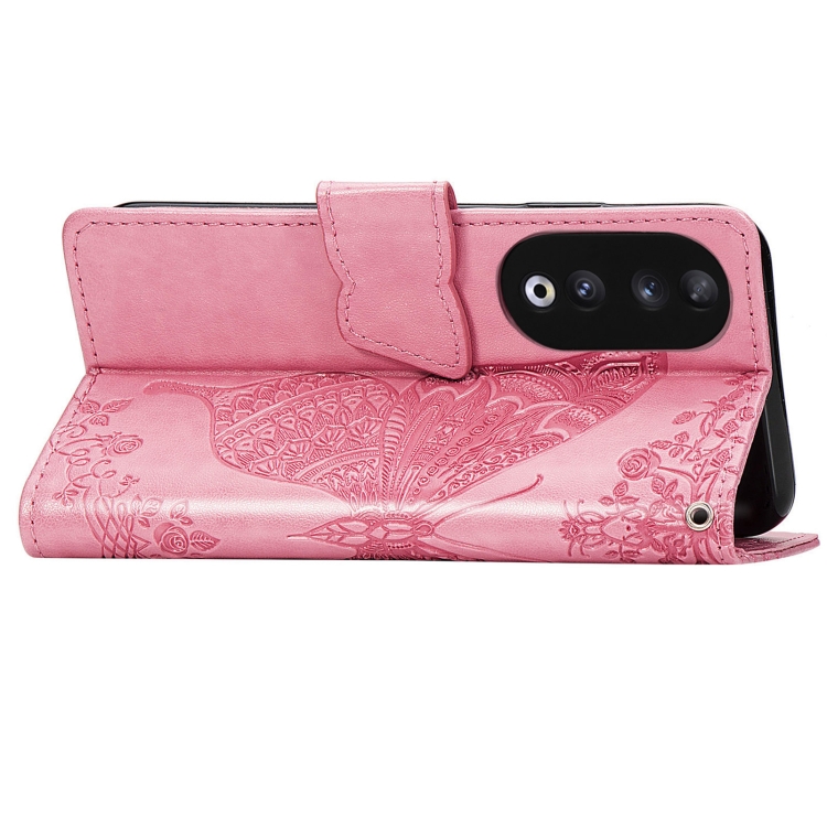 Funda para Honor X9B de Cuero con Relieve de Flor de Amor y Mariposa (Rosa)