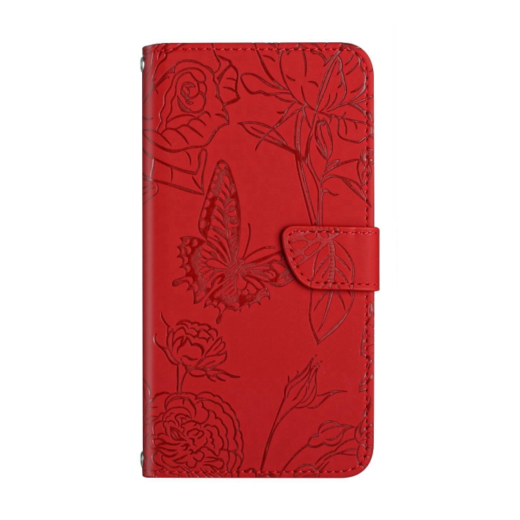 Funda de Cuero para Honor X9B Ht03 con Tapa y Relieve Butterfly (Rojo)