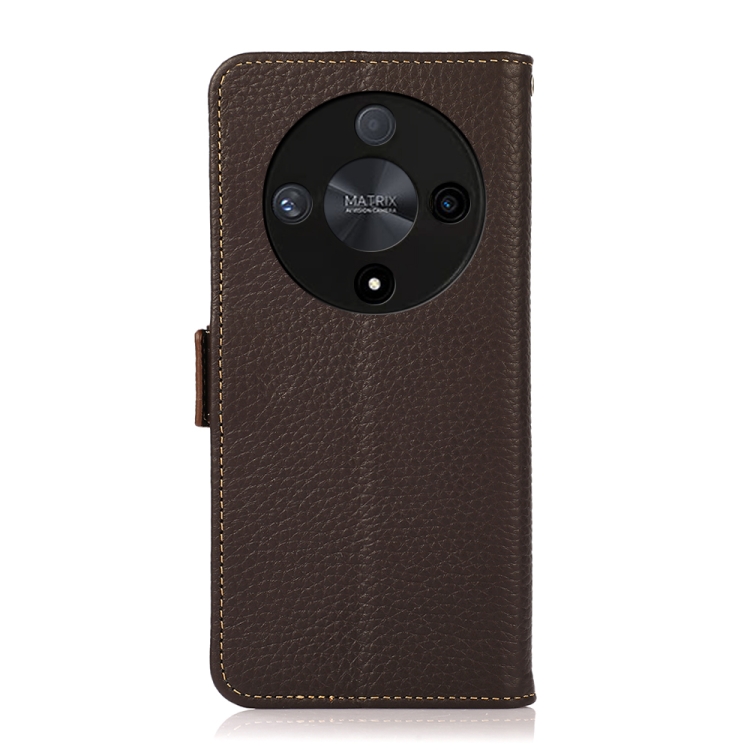 Funda para Honor X9B Khazneh de Cuero Genuino Litchi con Protección RFID y Cierre Magnético (Marrón)