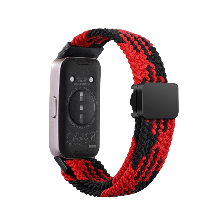 Correa de Reloj Trenzada de Nailon para Huawei Band 9/8 con Hebilla Magnética (Rojo Negro)
