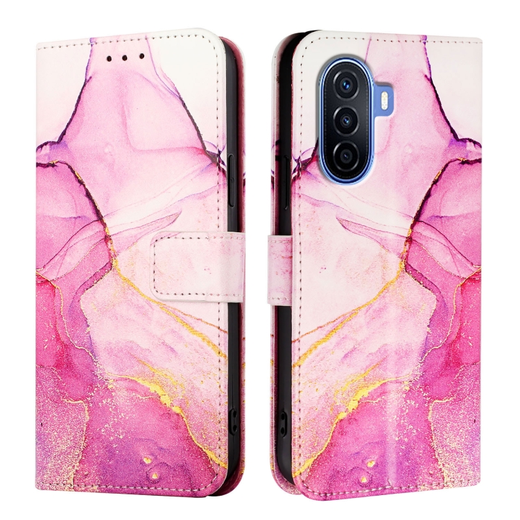 - 1x Funda de Cuero con Tapa para Huawei Enjoy 50 y Nova Y70 Plus Pt003 con Patrón Mármol (Rosa Púrpura Dorado)
