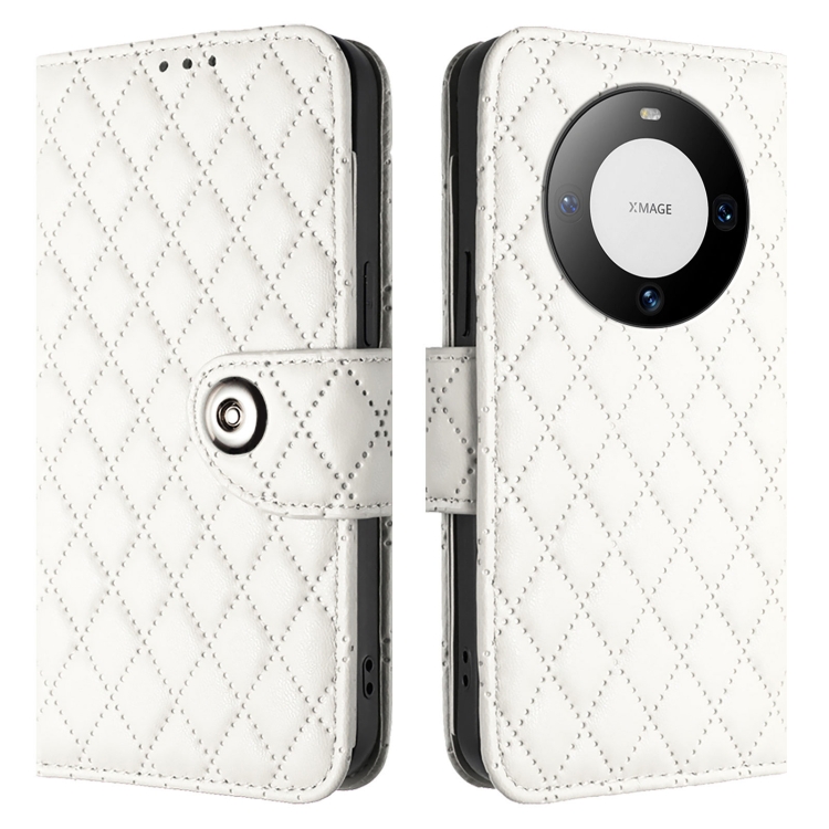 Funda para Huawei Mate 60 Pro / 60 Pro+ con Tapa de Cuero Textura Rómbica y Cordón (Blanco)