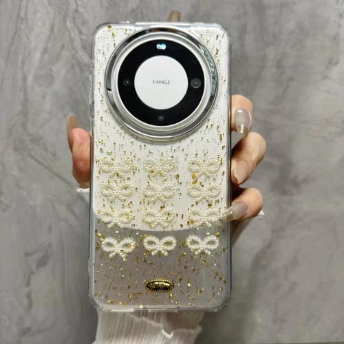 • 1x Estuche TPU Huawei Mate 60 Pro con Lazo de Perlas y Lámina Dorada (Arco Dorado)