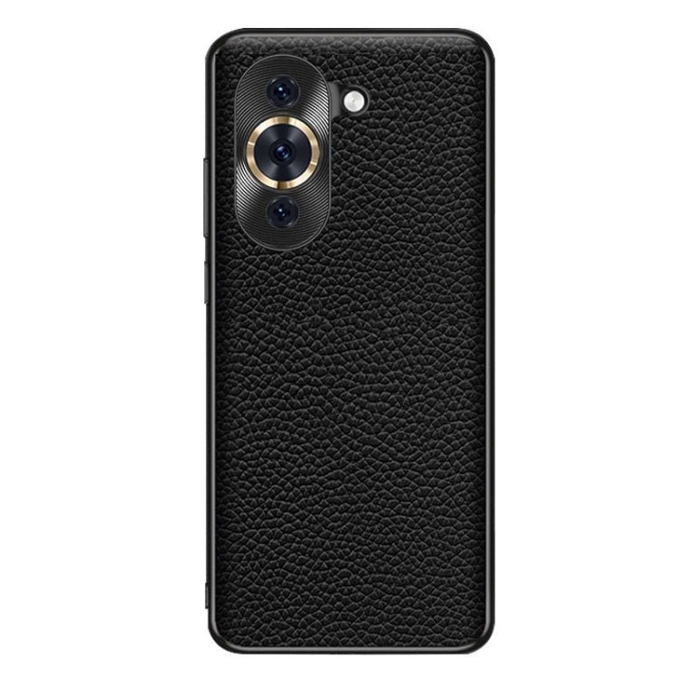 Funda de Teléfono Huawei Nova 10 Textura Litchi Cuero Genuino (Negro)