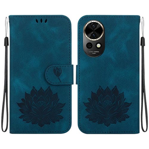 - 1x Funda de Cuero para Huawei Nova 12 con Relieve de Loto (Azul Oscuro)