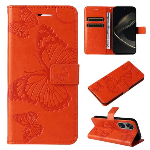 Funda para Huawei Nova 12 Se y Nova 11 Se de Cuero con Tapa y Patrón Mariposa 3D (Naranja)