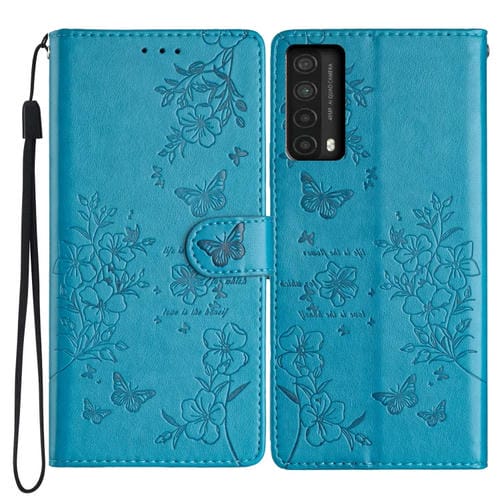 Funda para Huawei P Smart 2021 Y7A de Cuero con Relieve Flor de Amor y Mariposa (Azul)