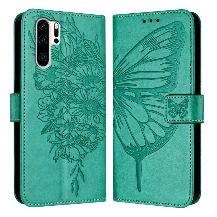 Funda de Cuero para Huawei P30 Pro con Mariposa en Relieve (Verde)