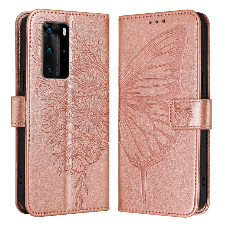 Funda de Cuero para Huawei P40 Pro con Mariposa en Relieve (Oro Rosa)