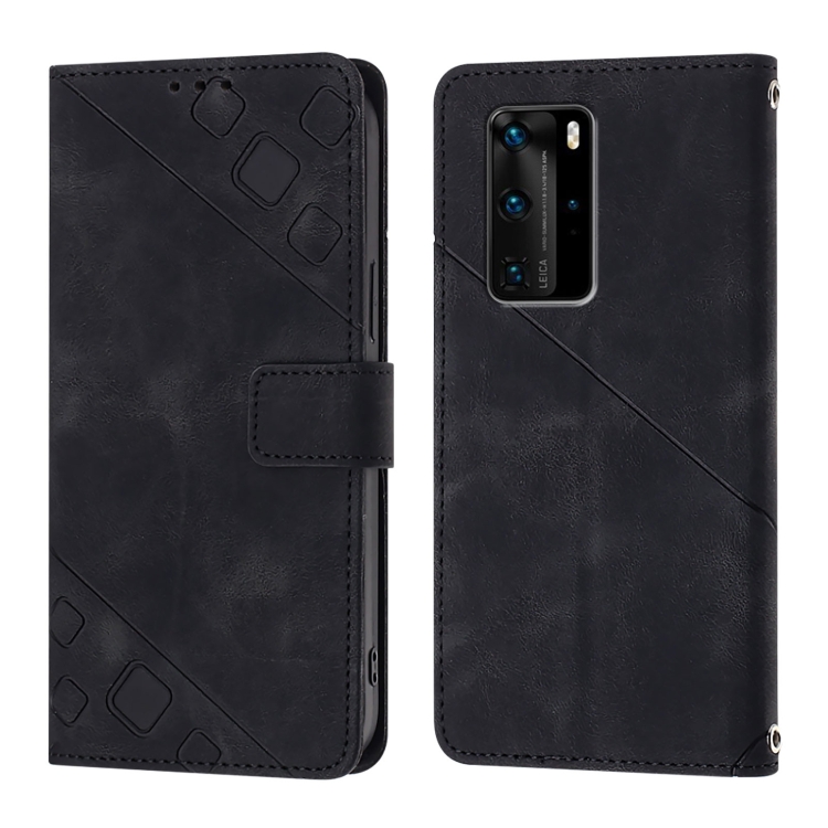 - 1x Funda de Cuero para Huawei P40 Pro Skin Feel En Relieve (Negro)