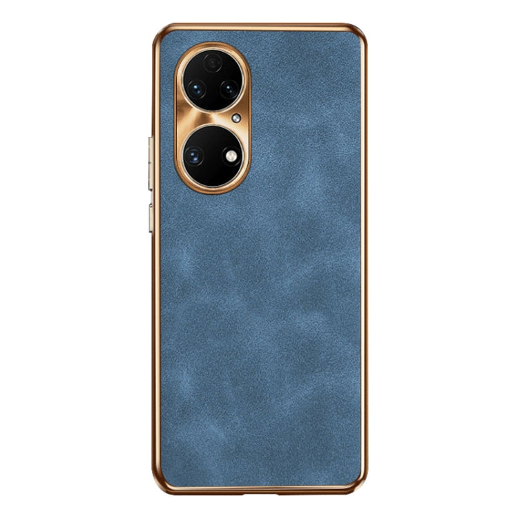 Funda de Cuero Piel de Cordero Galvanizada para Huawei P50 (Azul)