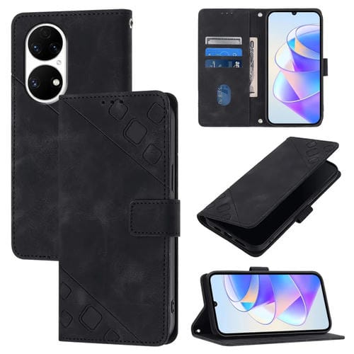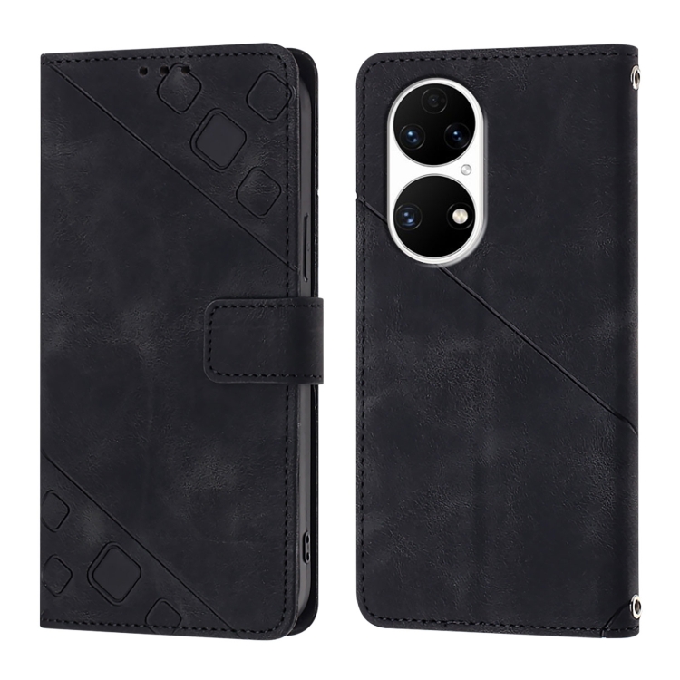 Funda de Cuero para Huawei P50 Skin Feel en Relieve (Negro)
