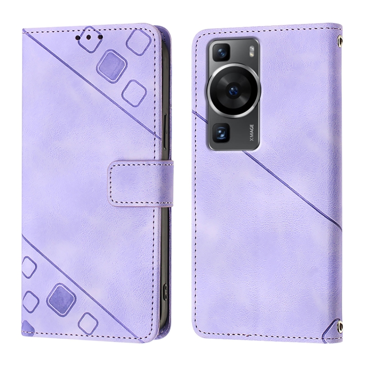 Funda de Cuero Skin Feel para Huawei P60 y P60 Pro en Relieve (Púrpura Claro)