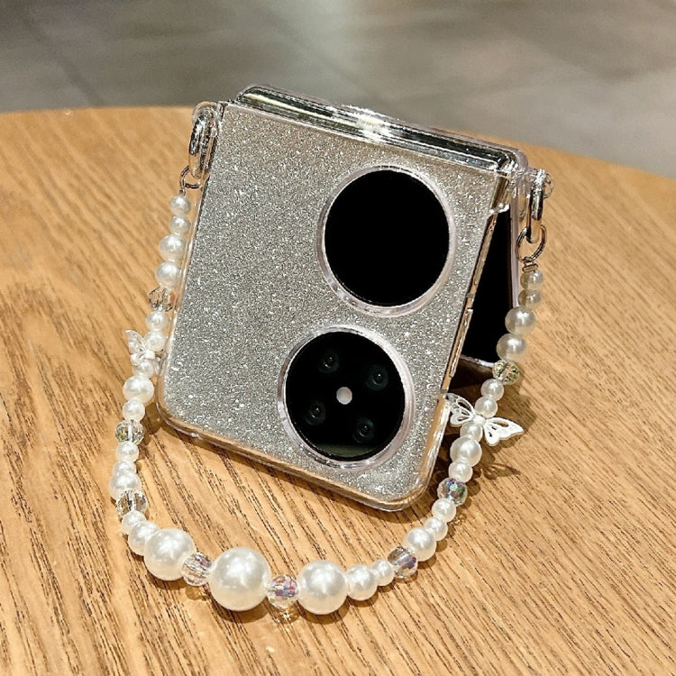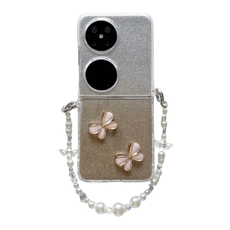 Funda para Huawei Pocket 2 Glitter Powder 3D Butterfly PC con Hebilla Lateral y Pulsera de Perlas (Oro)