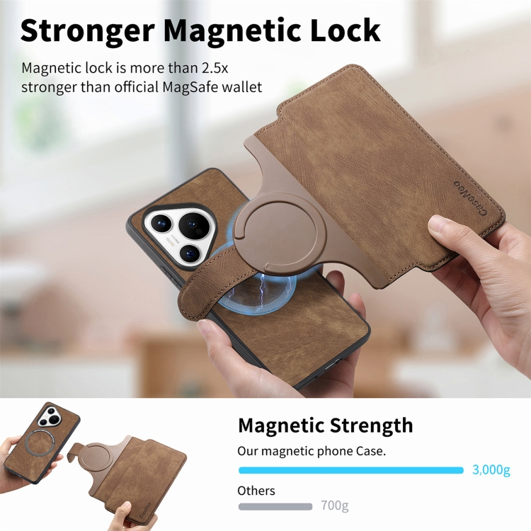 Funda de Cuero Caseneo Magsafe Rfid para Huawei Pura 70 Antirrobo (Marrón)