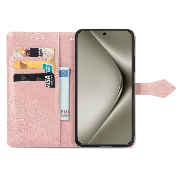 Funda para Huawei Pura 70 Pro Cuero con Relieve Flores Mandala (Oro Rosa)