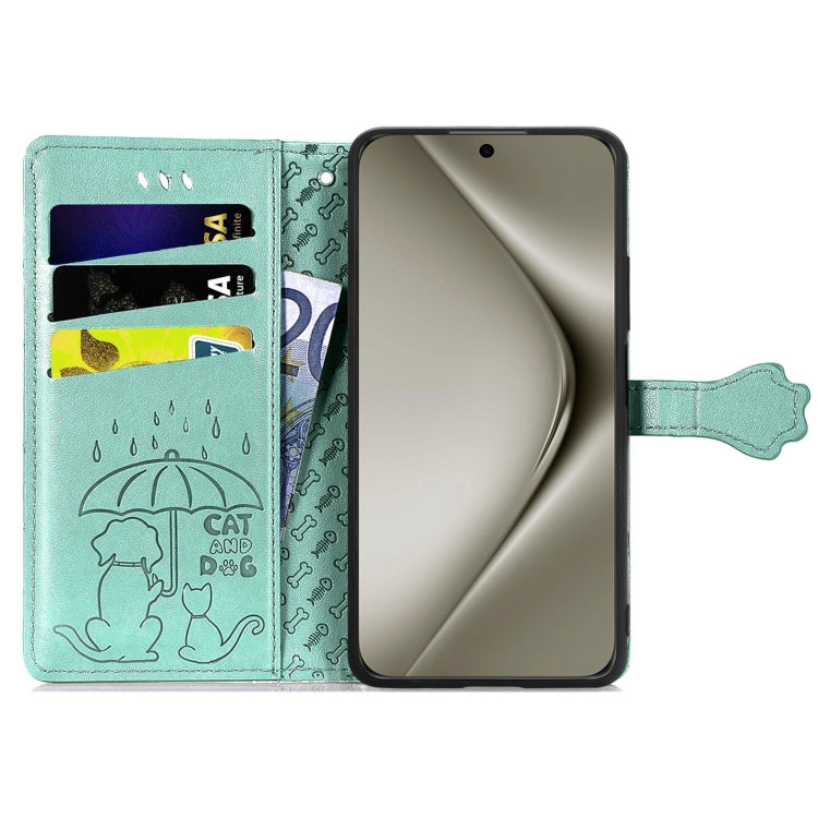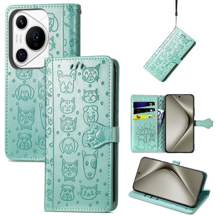 Funda de Cuero para Huawei Pura 70 Ultra con Relieve Perros y Gatos (Verde)